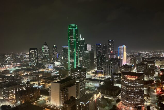 겨울밤의 달라스는 별빛보다 밝은 조명으로 반짝입니다.